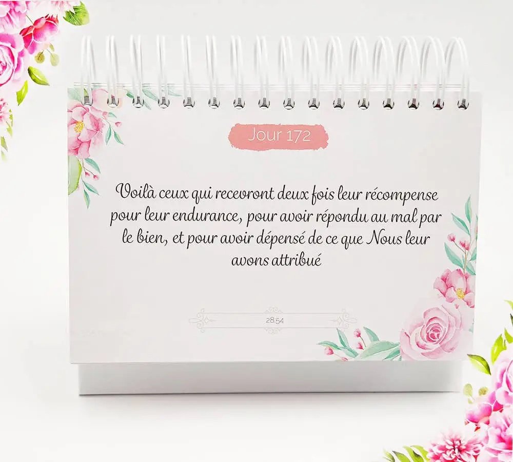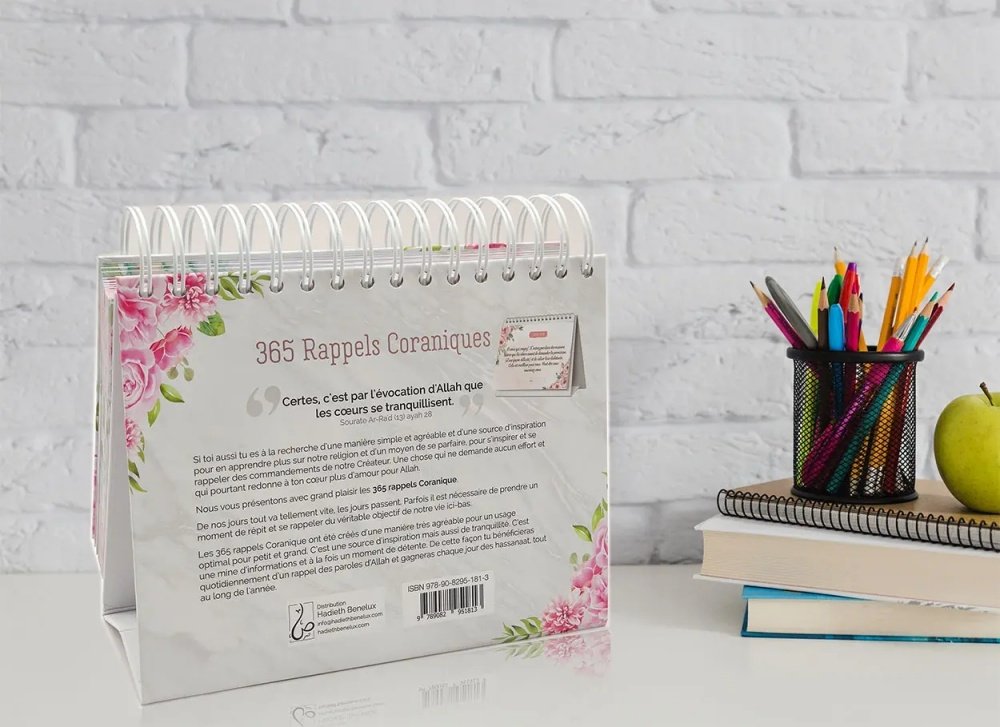 Les 365 rappels coranique ont été crées d’une manière très agréable pour un usage optimal pour petit et grand. c’est une source d’inspiration mais aussi de tranquillité. C’est une mine d’informations et à la fois un moment de détente. De cette façon tu bénéficieras quotidiennement d’un rappel des paroles d’Allah et gagneras chaque jour des hassanaat, tout au long de l’année.