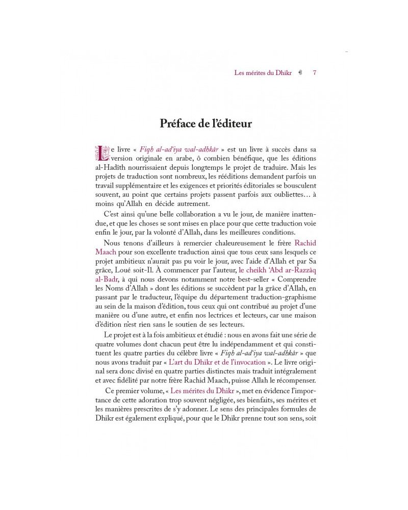 LES MÉRITES DU DHIKR – ‘ABD AR-RAZZÂQ AL-BADR – ÉDITIONS AL-HADÎTH