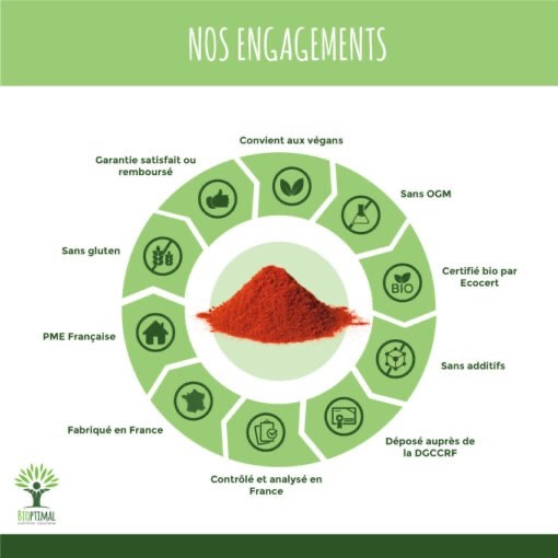 🌿🌳 UNE SOLUTION NATURELLE : La Levure de Riz Rouge est utilisée depuis des siècles par la médecine chinoise afin d’améliorer la digestion et la circulation sanguine. Plus récemment les scientifiques ont découvert que ce champignon microscopique avait un effet particulièrement puissant pour garder une bonne santé vasculaire. 👌💎 MONACOLINE K : La Levure de Riz Rouge contient en effet une statine naturelle : la Monacoline K, c’est elle qui maintient le niveau de mauvaises graisse dans le sang, le mauvais cholestérol. L’industrie pharmaceutique utilise des statines de synthèse pour fabriquer ses médicaments afin d’avoir les mêmes effets. Notre Levure Riz Rouge bio constitue donc une alternative efficace et naturelle. ✅📆 NOUVELLE REGLEMENTATION : Nous dosons nos gélules à 600mg de Levure de riz rouge. Soit 2,4mg de Monacoline k. Cette une nouvelle règlementation gouvernementale arrivée cette été. Vous ne trouverez plus de gélule de riz rouge avec + de 3mg par gélule et dose journalière. 🔼💊 HAUTEMENT DOSÉ : Notre Formule est pure et biologique ce qui lui procure un fort pouvoir d’assimilation. En plus d’être 100% naturel, notre produit contient 100% de poudre de levure par gélule et rien d’autre! Soit 600 mg par dose journalière recommandée. ⭐🔍 QUALITÉ FRANÇAISE = SECURITÉ : Nous fabriquons nos compléments alimentaires en France, nous avons fait le choix d’encapsuler notre levure de riz rouge bio en gélules végétales et non en comprimés pour ne pas intégrer de substances controversées tel que le talc, le stéarate ou le carbonate de magnésium. Nos produits sont garantis sans additifs, ni sucre, ni ogm, ni pesticides, ni gluten, ni lactose, ils sont contrôlés en France et certifiés agriculture biologique, HACCP + et Afnor. Qu’est-ce que c’est? La levure de riz rouge tient son nom d’un champignon microscopique qui est cultivé sur du riz. Ce sont les pigments de la levure qui sont rouge. Sa vertu principale est de maintenir le taux de mauvaises graisses et de lipides sanguins. Notre produit Bioptimal nutrition naturelle : Ingrédients, uniquement levure de riz rouge bio. Formule en gélule végétale, pour un régime adapté vegan. Dosage 600 mg / capsule. 1 gélules par jour, soit 600 mg. Boire avec un grand verre d’eau. Cure de 2 mois. Allégations liées : ● Contribue à maintenir un taux normal de cholestérol LDL à condition d’apporter 10 mg de monacoline K par jour – 1 gélule/jour