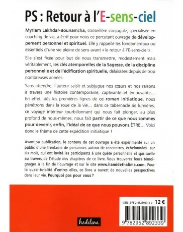 Myriam LAKHDAR-BOUNAMCHA, conseillère conjugale, spécialisée en coaching de vie, a écrit pour nous ce percutant ouvrage de développement personnel et spirituel. Elle y rappelle les fondamentaux ou essentiels d’une vie pleine de sens avant « le retour à l’E-Sens-Ciel ».