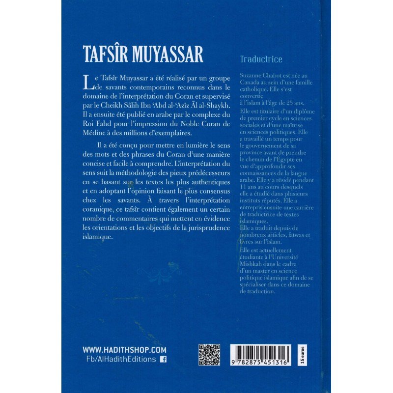 Le Tafsîr Muyassar a été réalisé par un groupe de savants contemporains reconnus dans le domaine de l’interprétation du Coran et supervisé par le Cheikh Sâlih Ibn ‘Abd al-‘Azîz Âl al-Shaykh. Il a ensuite été publié en arabe par le complexe du Roi Fahd pour l’impression du Noble Coran de Médine à des millions d’exemplaires.